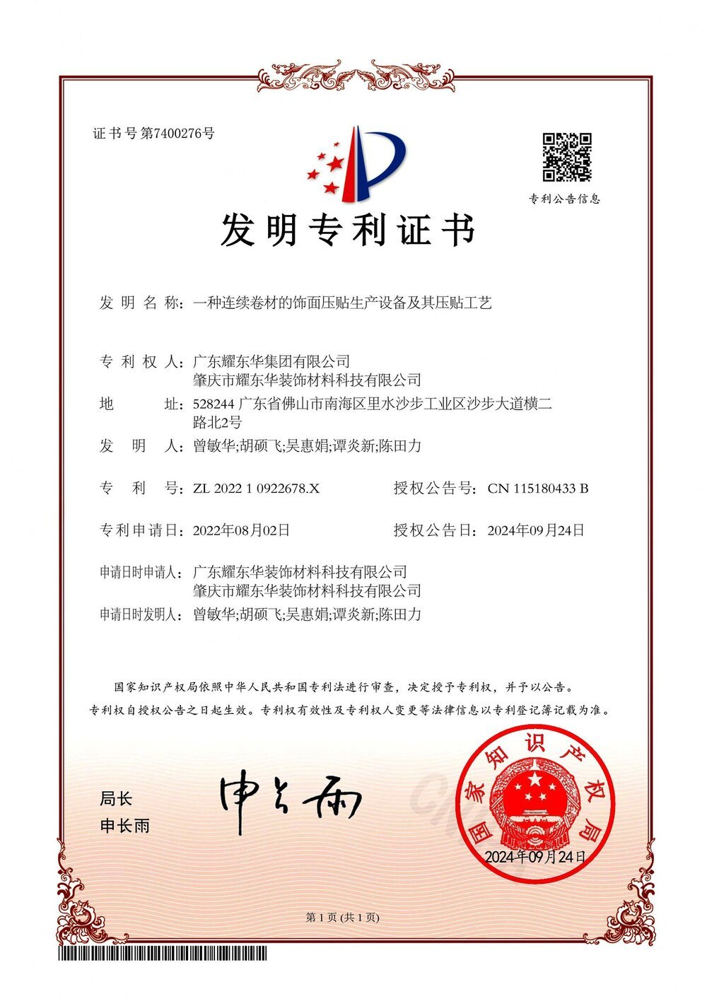 一种连续卷材的饰面压贴生产设备及其压贴工艺