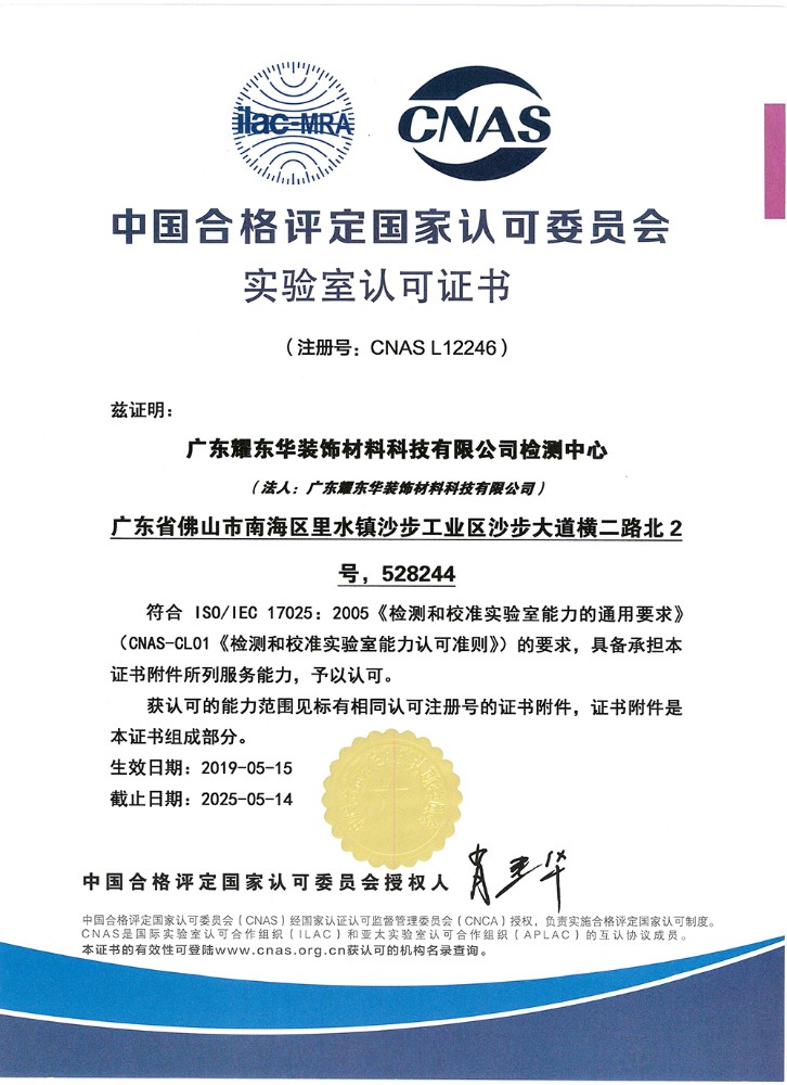 CNAS国家实验室资质认可的加持,将持续为“红棉花”板材在高质量发展的精品路线上保驾护航!未来,耀东实验室将秉承“公平公正、专业规范”的态度,不断提升自身“履职把关,服务社会”的技术水平,积极参与社会研发与服务,促进产业发展,推动技术创新,保障质量安全,服务经济建设。