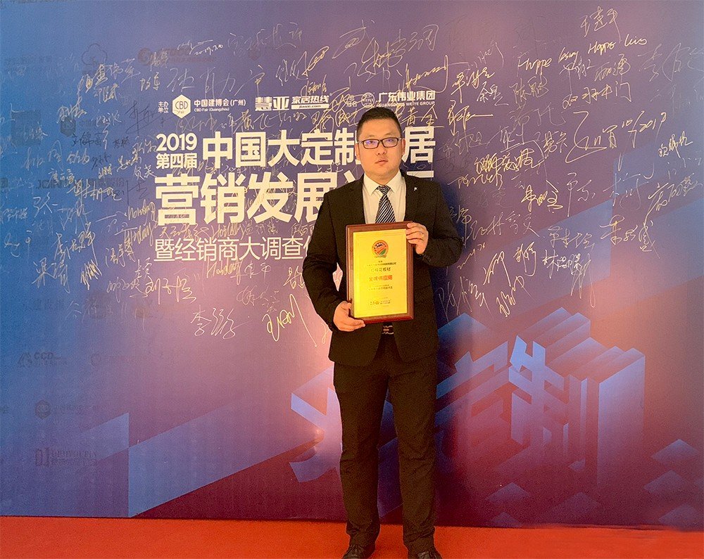 ↑门徒娱乐荣获2019年全屋定制行业经销商大调查“金牌供应商”。