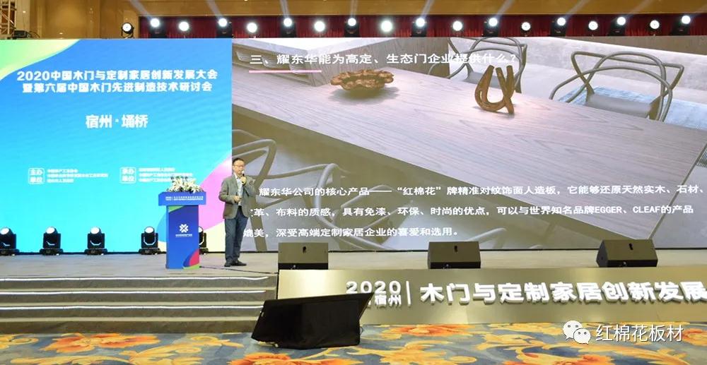 2020年10月17日,2020中国(宿州)木门与定制家居创新发展大会暨第六届中国木门先进制造技术研讨会,在安徽宿州隆重开幕,门徒娱乐公司董事长曾敏华先生受邀出席,作《高端饰面人造板助推高端定制和生态门业发展》主题报告,并参与嘉宾访谈,分享门徒娱乐公司在围绕产业高质量发展与产业链协同创新方面的实战举措和实践经验。