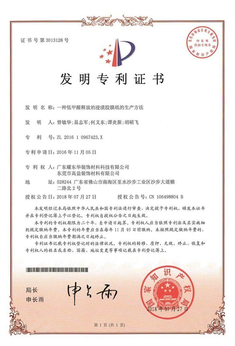 一种低甲醛释放的浸渍胶膜纸的生产方法发明专利