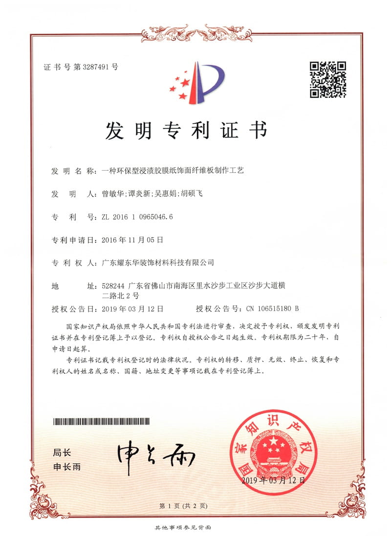 一种环保型浸渍胶膜纸饰面纤维板制作工艺发明专利