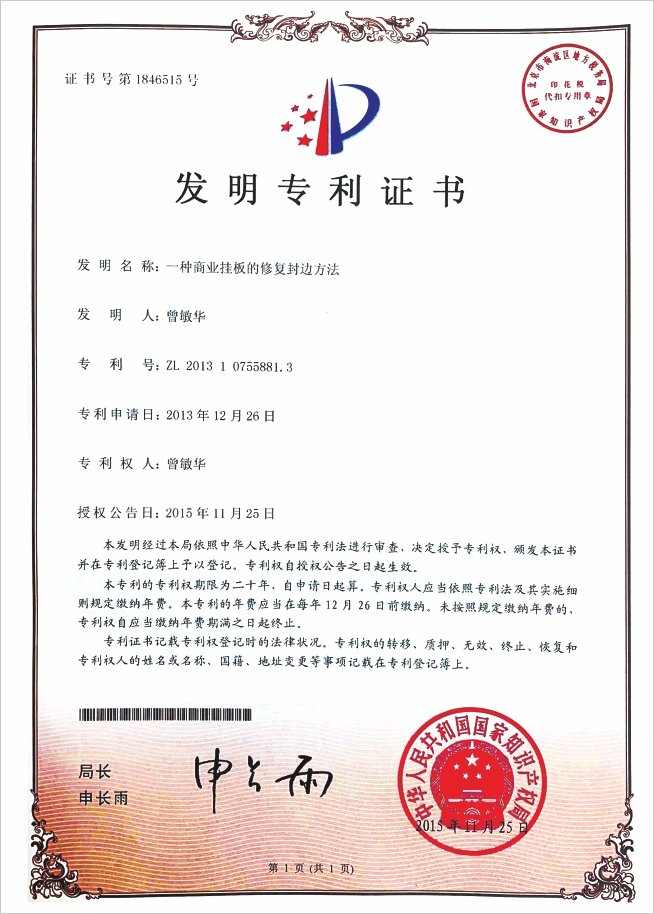 一种商业挂板的修复封边方法发明专利